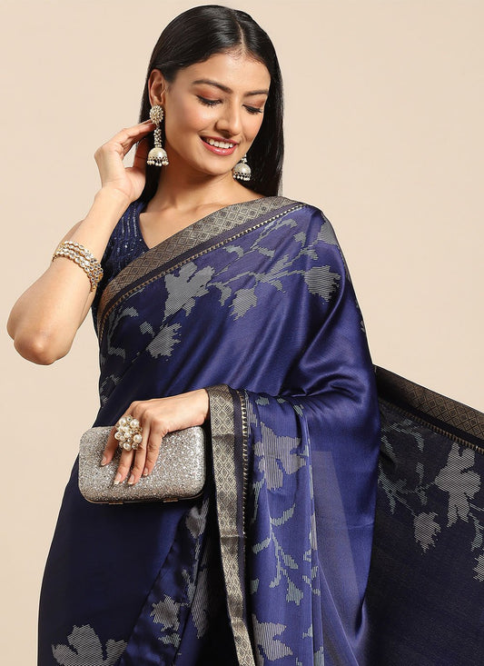 Classic Satin Blue Floral Patch Saree