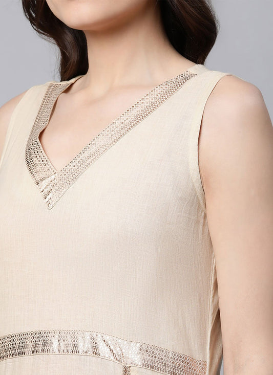 Designer Kurti Cotton Beige Print Kurtis