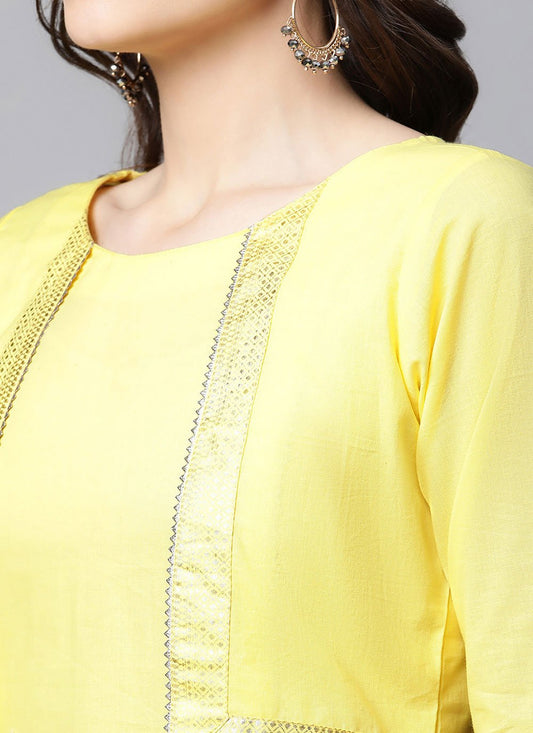 Designer Kurti Cotton Yellow Embroidered Kurtis