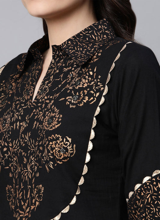 Designer Kurti Cotton Black Print Kurtis