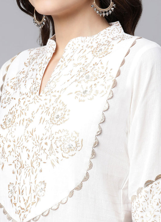 Party Wear Kurti Cotton White Print