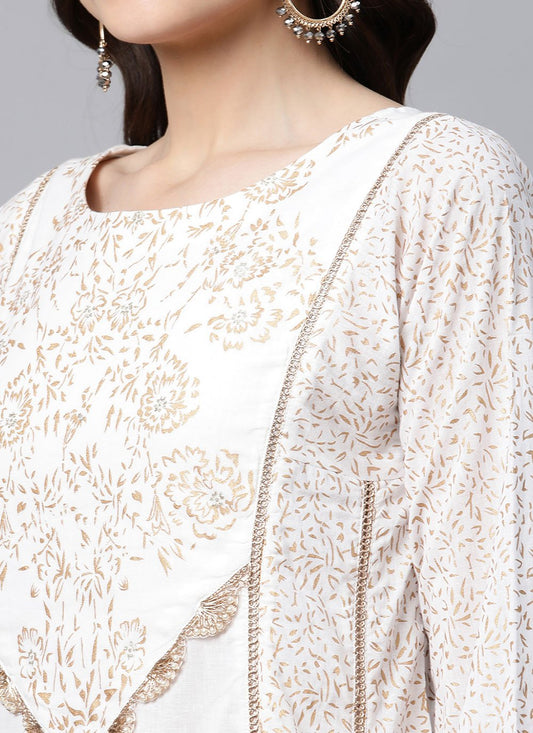 Casual Kurti Cotton White Foil Print