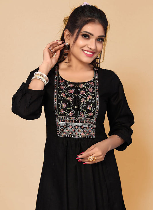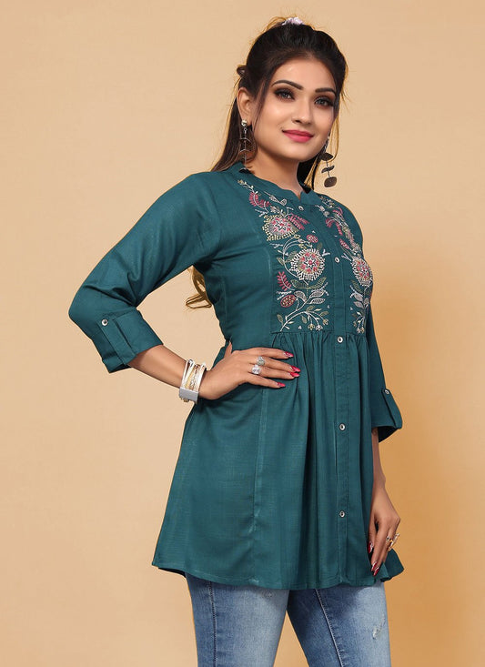 Designer Kurti Rayon Blue Embroidered Kurtis