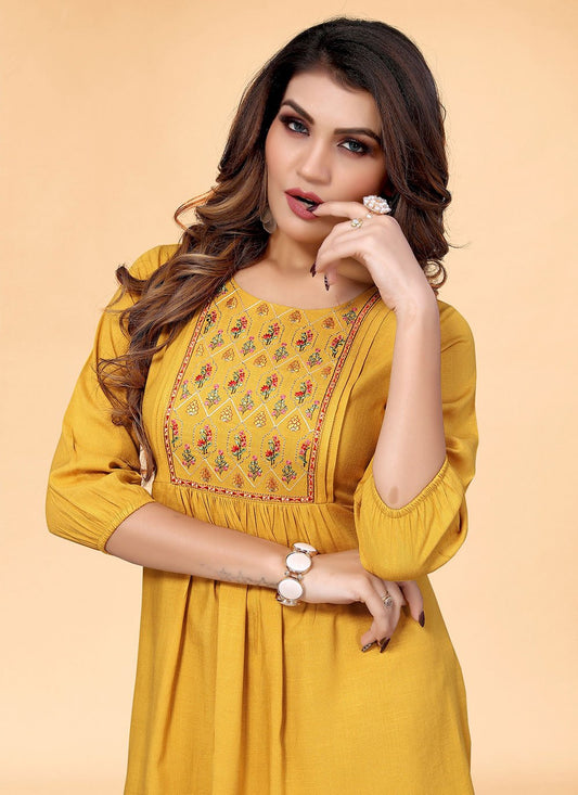 Casual Kurti Rayon Mustard Embroidered Kurtis