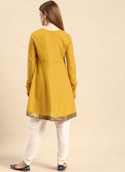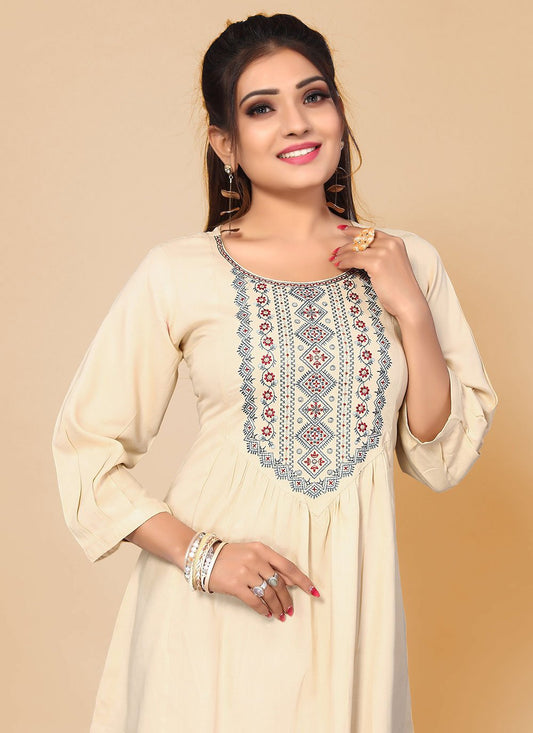 Designer Kurti Rayon Mustard Embroidered Kurtis