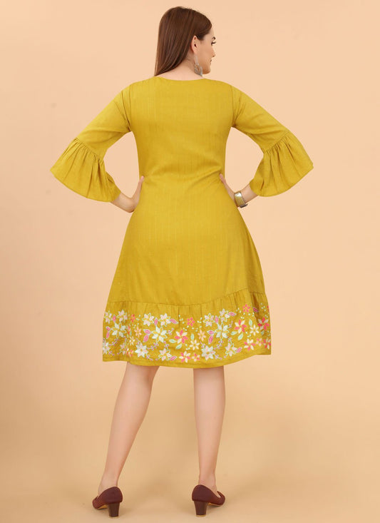 Designer Kurti Rayon Viscose Mustard Embroidered