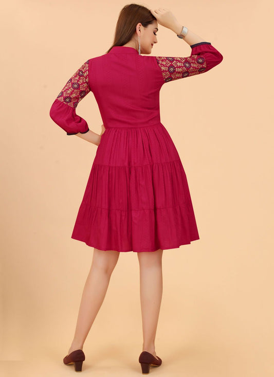 Casual Kurti Rayon Pink Embroidered Kurtis
