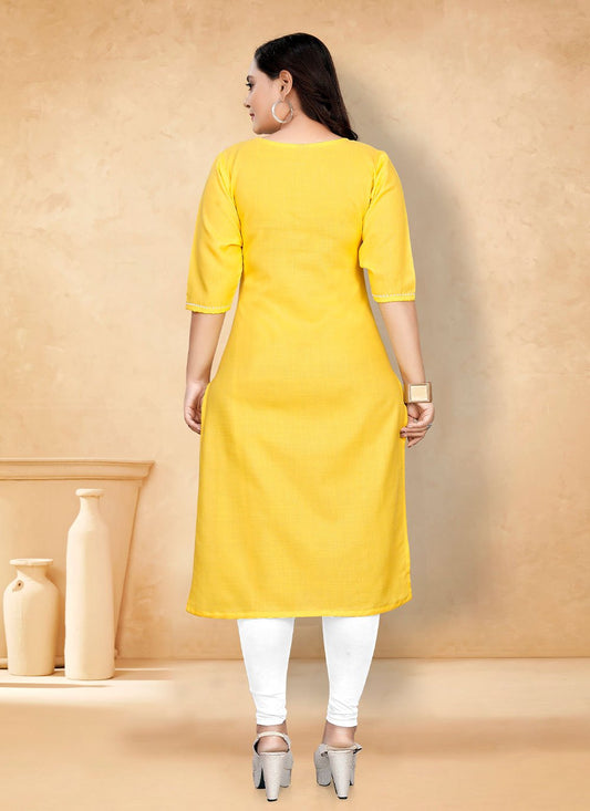 Designer Kurti Cotton Mustard Embroidered Kurtis
