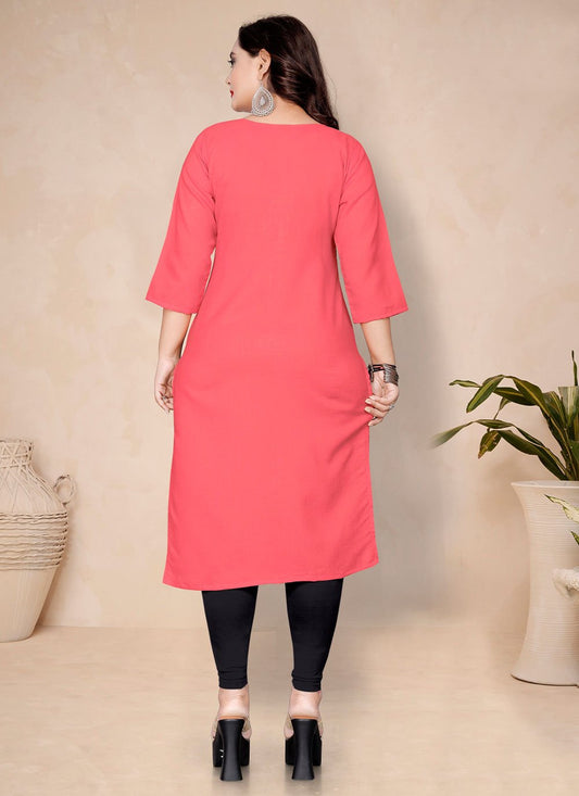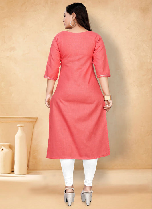 Casual Kurti Cotton Pink Embroidered Kurtis