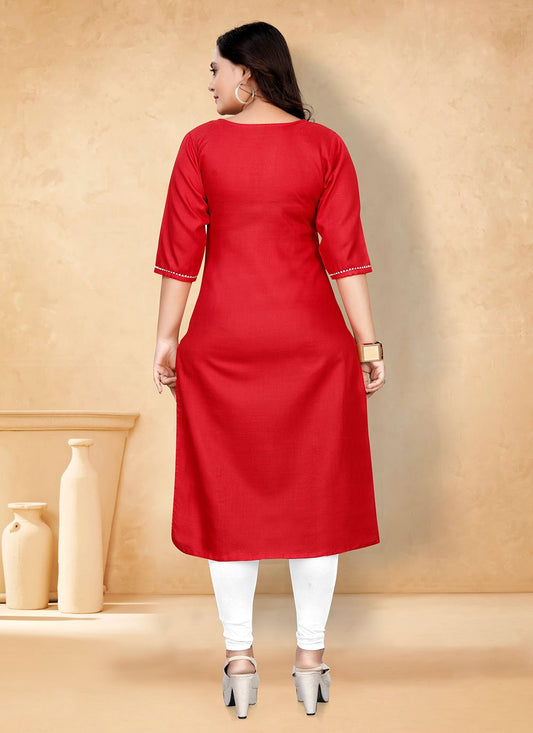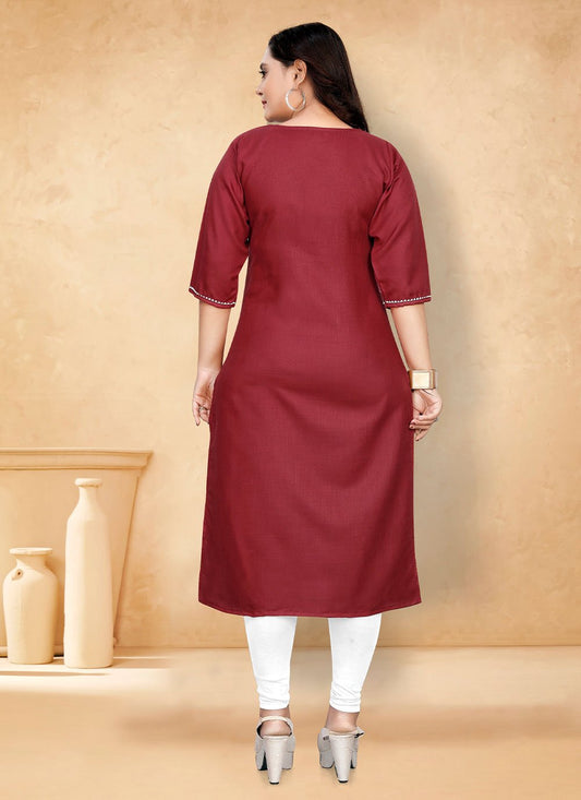 Casual Kurti Cotton Maroon Embroidered Kurtis