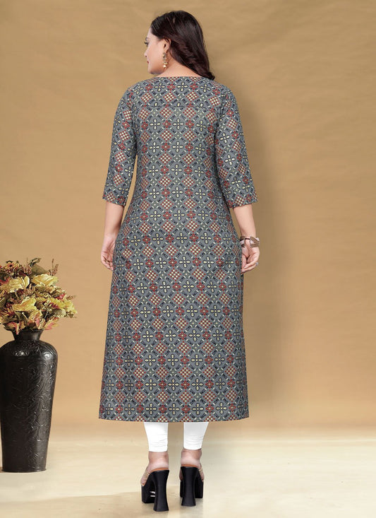 Designer Kurti Cotton Grey Foil Print