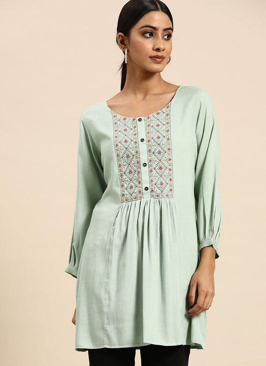 Designer Kurti Rayon Sea Green Embroidered