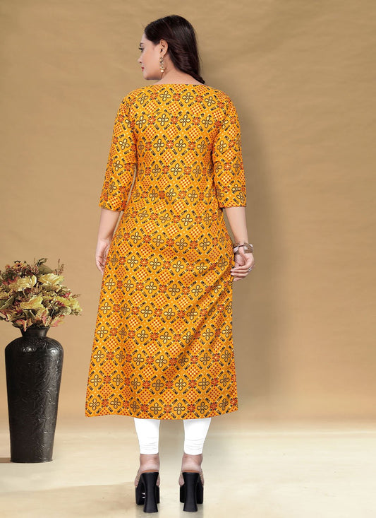 Designer Kurti Rayon Mustard Foil Print