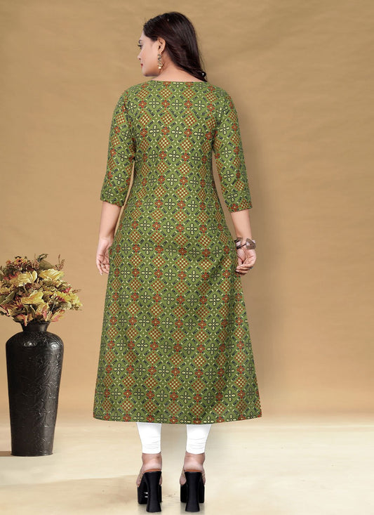 Casual Kurti Cotton Green Foil Print