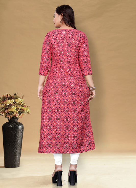 Casual Kurti Rayon Pink Foil Print