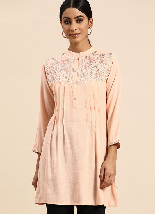 Casual Kurti Rayon Peach Embroidered Kurtis