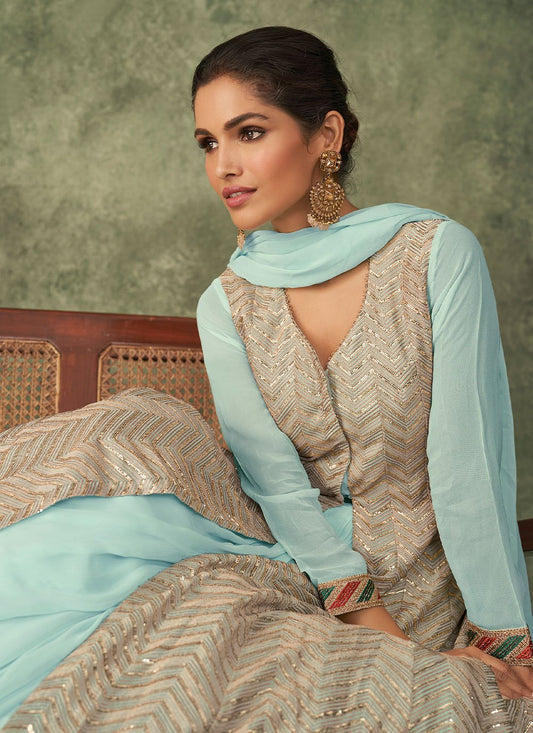 Lehenga Choli Georgette Grey Sequins Lehenga