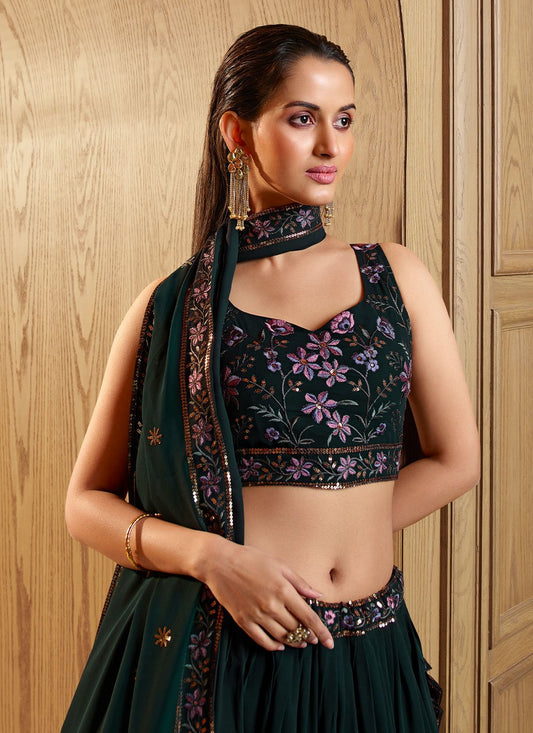 Lehenga Choli Georgette Green Embroidered Lehenga
