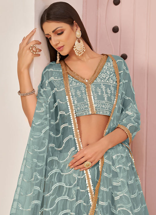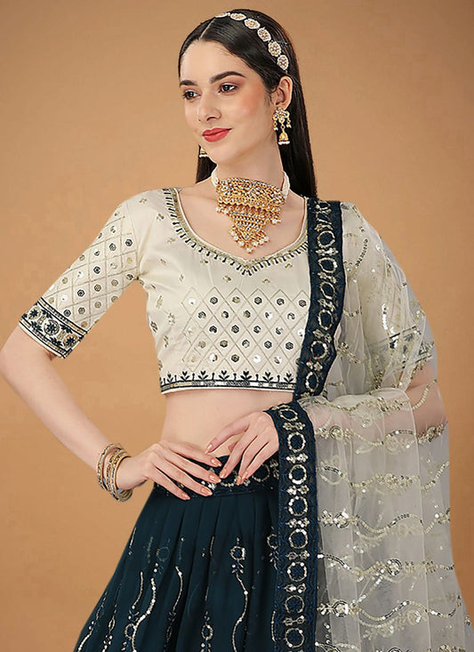 Lehenga Choli Georgette Blue Embroidered Lehenga