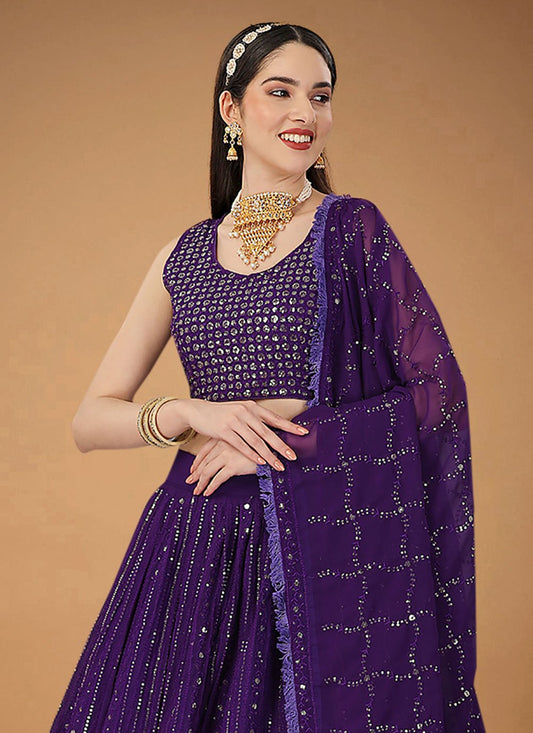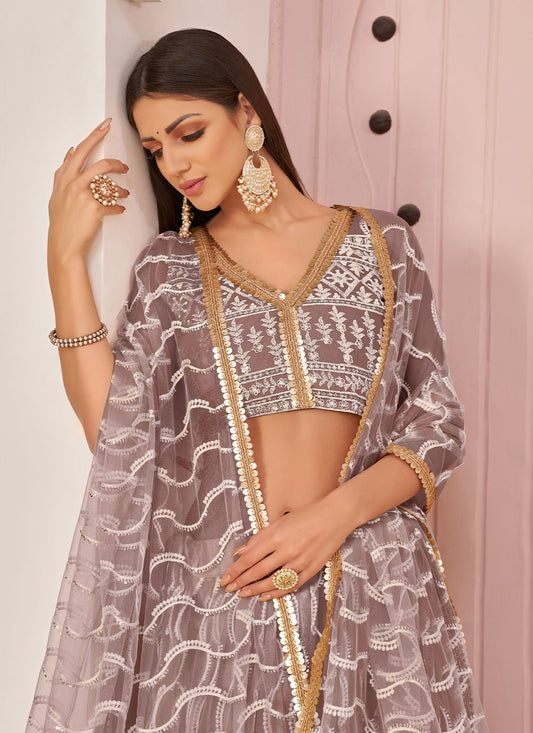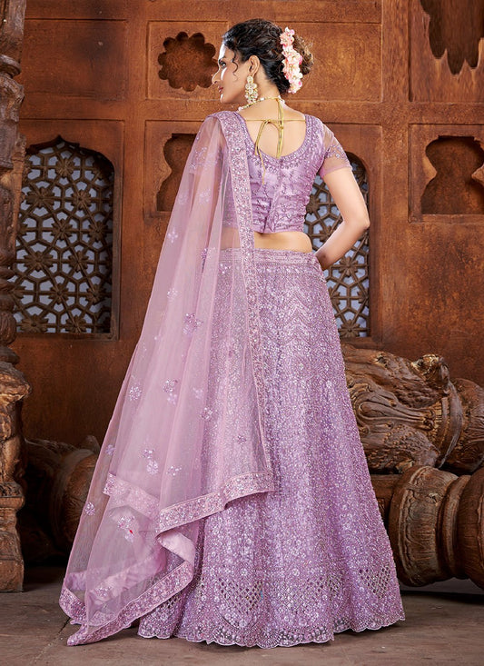 Lehenga Choli Net Mauve Embroidered Lehenga