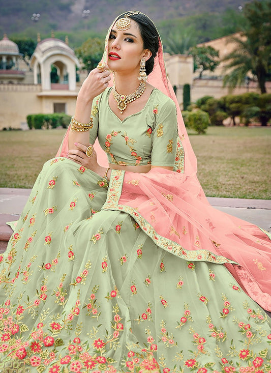 Lehenga Choli Georgette Green Embroidered Lehenga