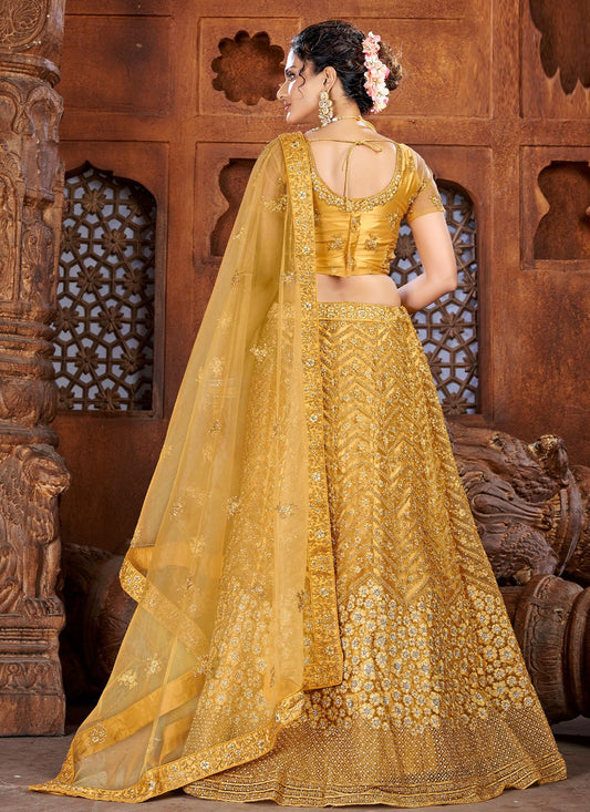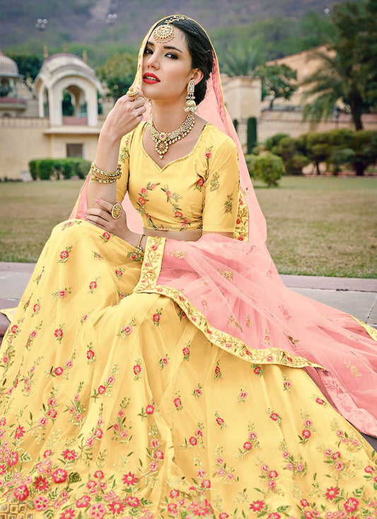 Lehenga Choli Faux Georgette Yellow Embroidered