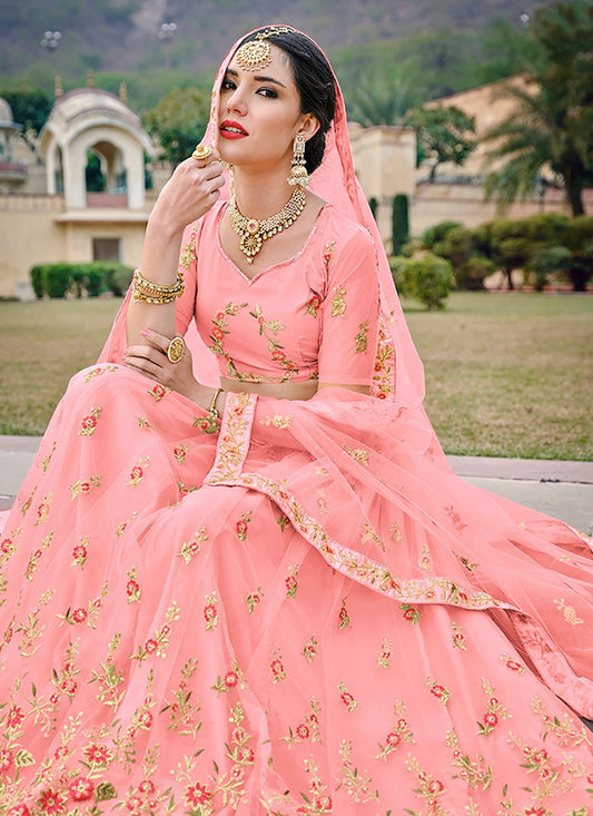 Lehenga Choli Fancy Fabric Pink Embroidered