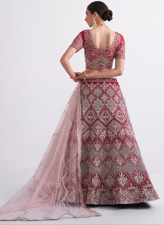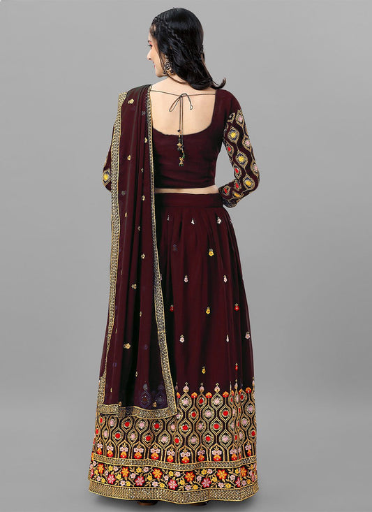 Lehenga Choli Velvet Maroon Diamond Lehenga