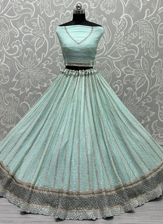 Lehenga Choli Georgette Aqua Blue Embroidered