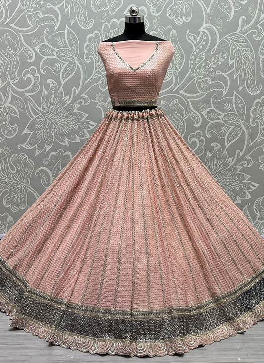 Lehenga Choli Georgette Peach Embroidered Lehenga
