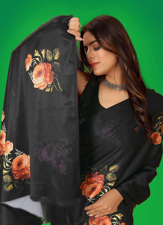 Classic Satin Black Digital Print Saree