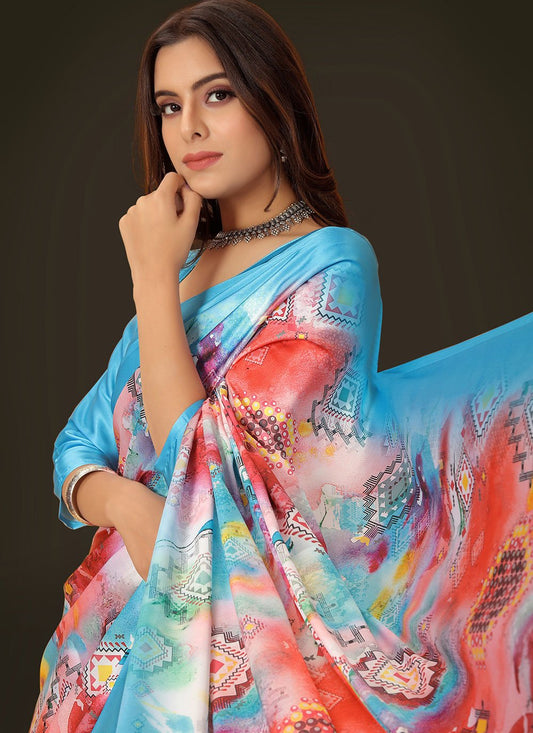Trendy Saree Satin Blue Digital Print