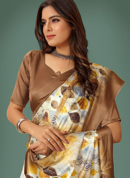 Trendy Saree Satin Beige Digital Print