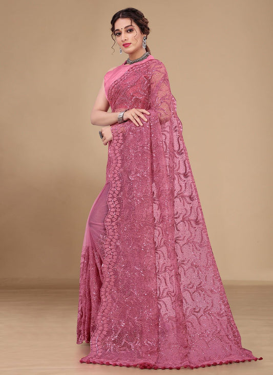 Trendy Saree Net Pink Embroidered Saree