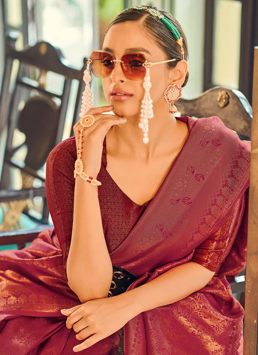 Classic Silk Maroon Weaving Saree