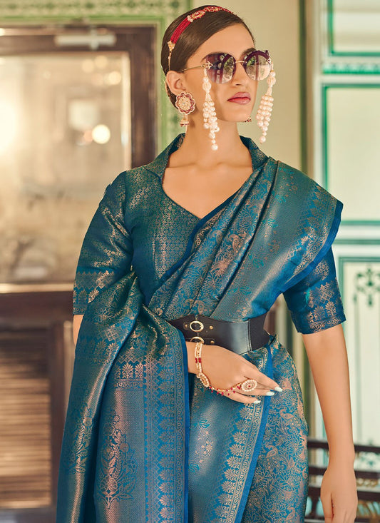 Contemporary Silk Rama Weaving Saree
