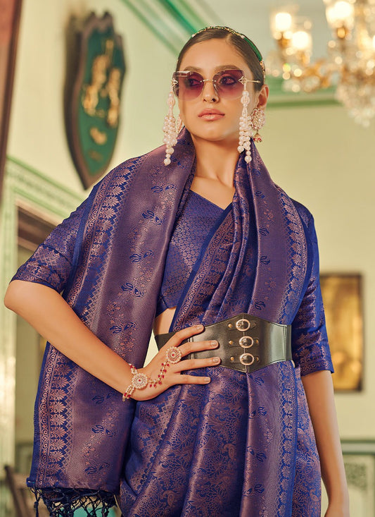 Trendy Saree Silk Blue Weaving Saree