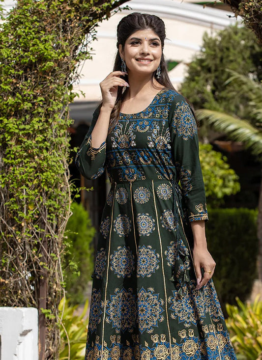 Gown Cotton Green Print Gown