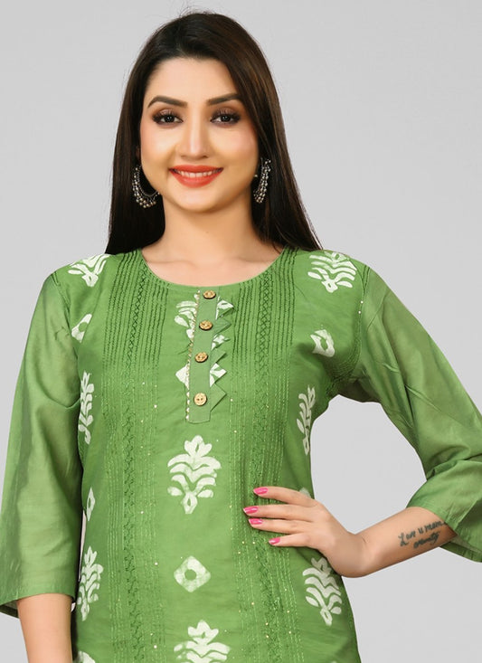 Designer Kurti Chanderi Green Embroidered Kurtis