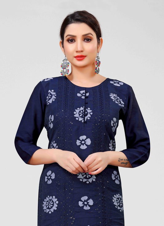 Designer Kurti Chanderi Blue Embroidered Kurtis