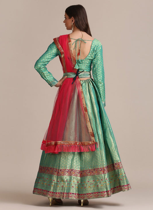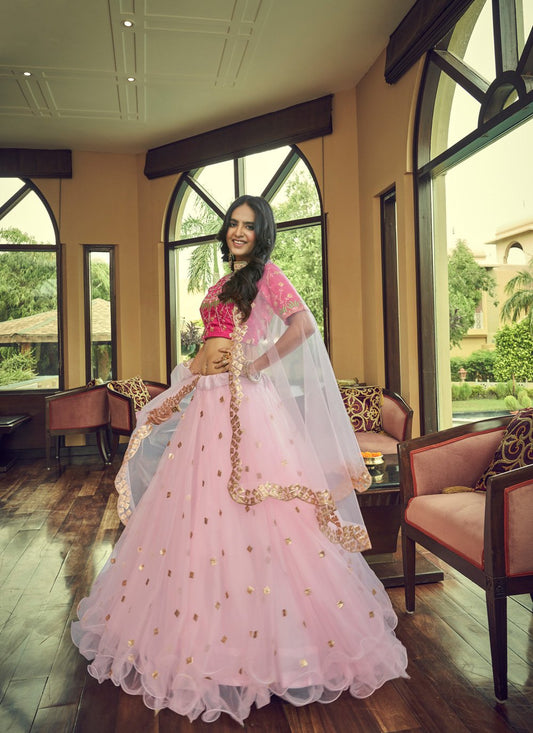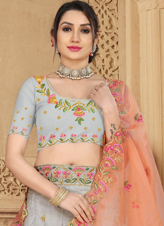 Lehenga Choli Organza Peach Embroidered Lehenga