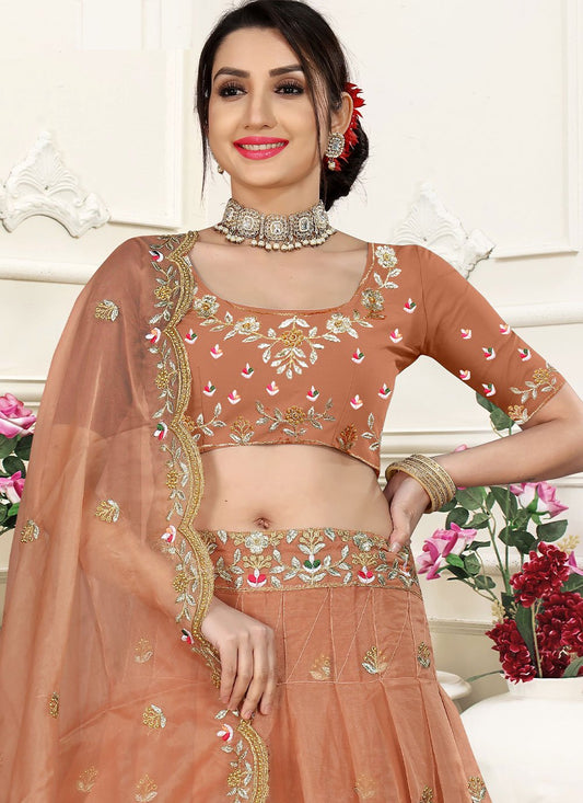 Lehenga Choli Organza Brown Embroidered Lehenga