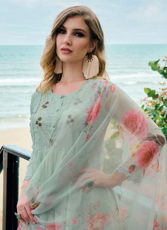 Palazzo Salwar Suit Rayon Viscose Aqua
