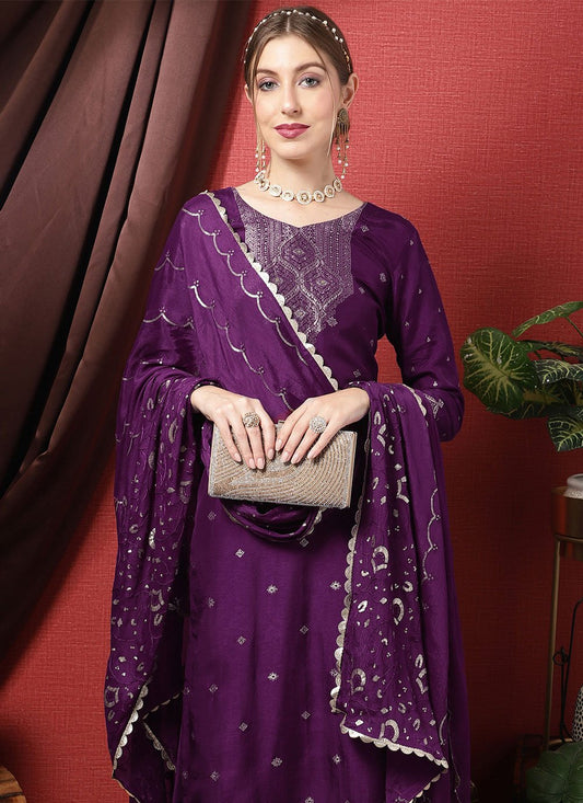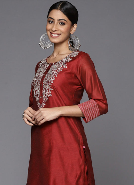 Trendy Suit Chanderi Silk Maroon Embroidered