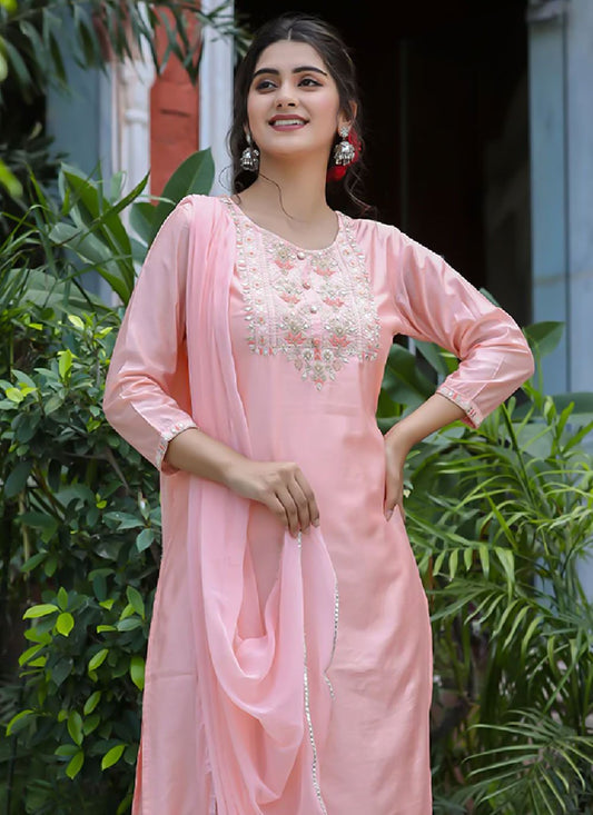 Salwar Suit Silk Morpeach Embroidered Salwar
