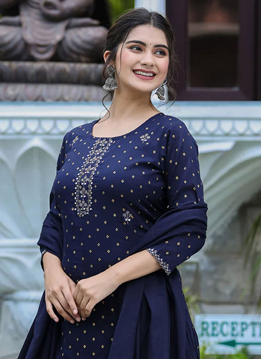 Straight Salwar Suit Cotton Blue Print