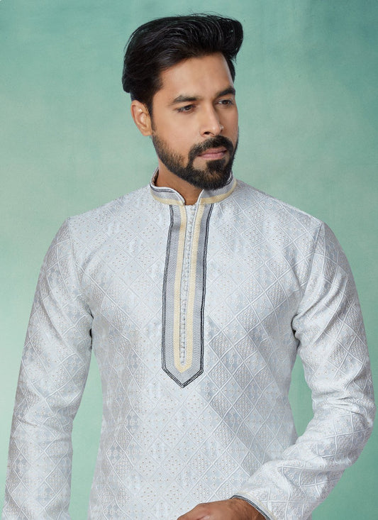 Kurta Pyjama Jacquard Silk Grey Jacquard
