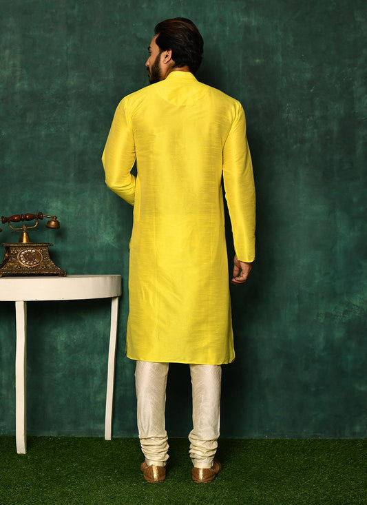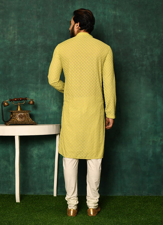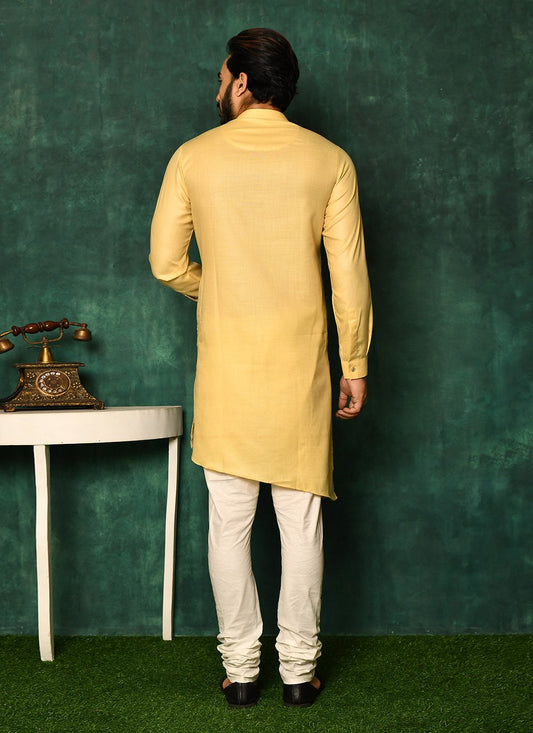 Kurta Pyjama Cotton Yellow Chikankari Work