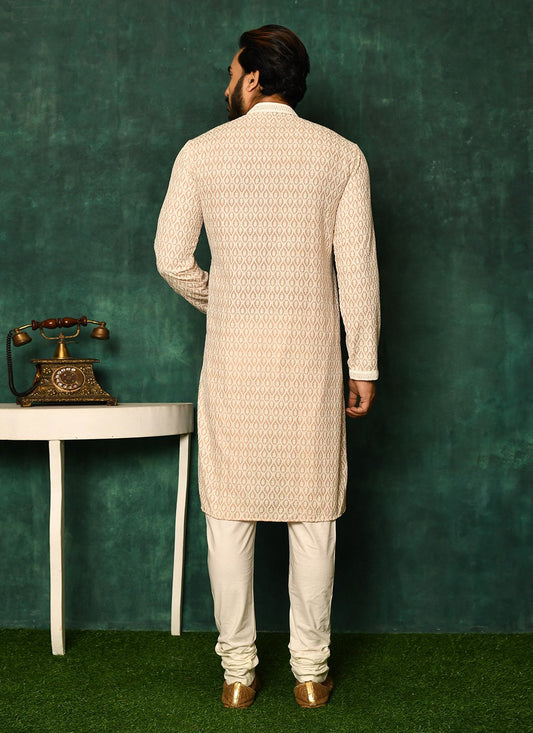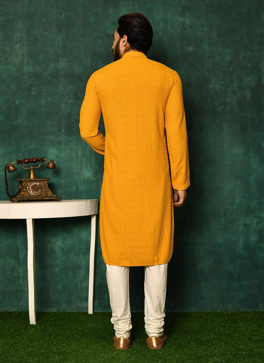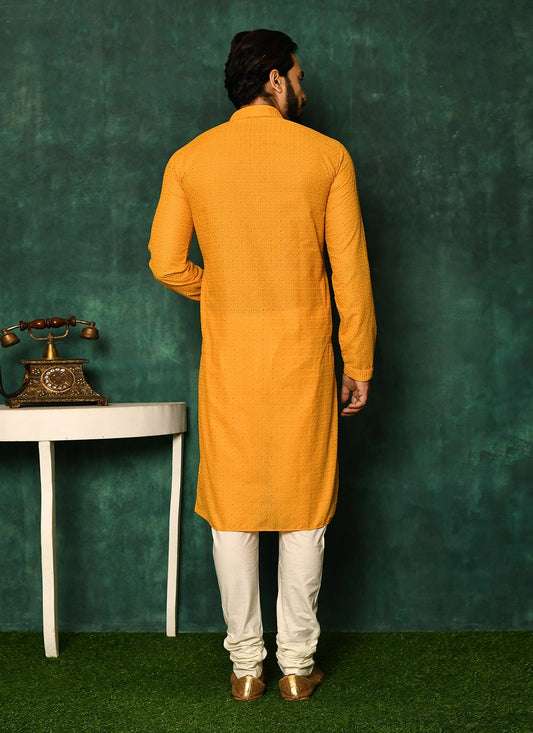 Kurta Pyjama Cotton Mustard Chikankari Work