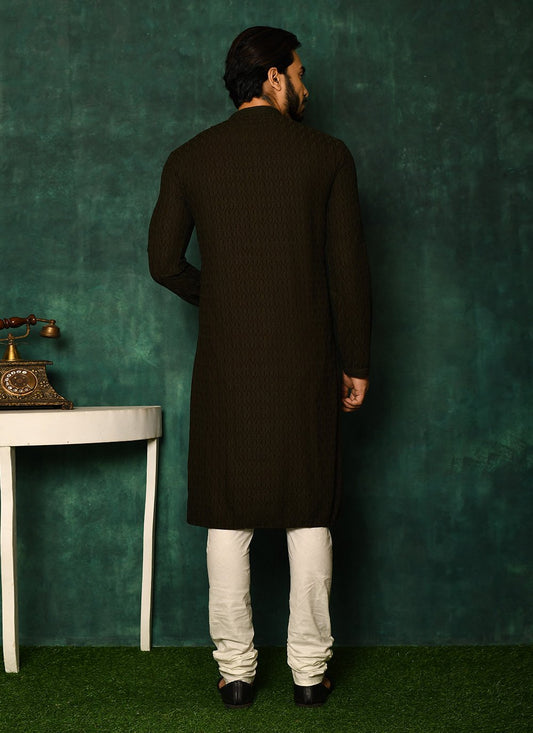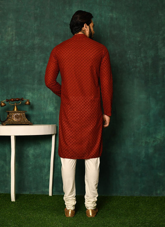Kurta Pyjama Cotton Maroon Chikankari Work